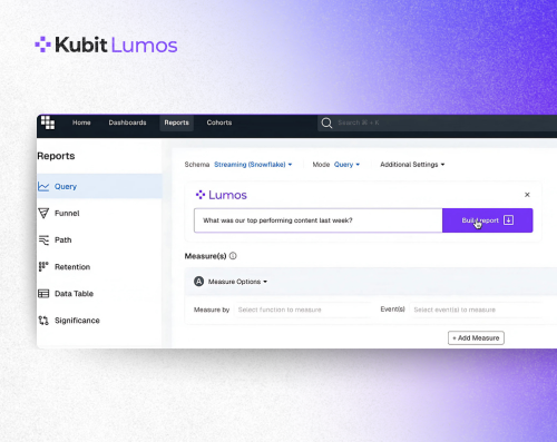 Ask Kubit is a natural language reporting experience that changes how teams get insights. Instead of navigating filters or building charts from scratch, you can simply describe what you’re trying to learn and Lumos will create the report for you.