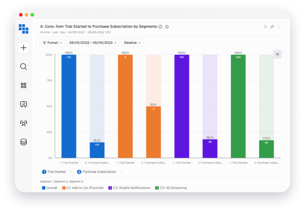 Compare user behavior across iOS, Android, desktop, and connected TV to uncover friction points and streamline experiences.