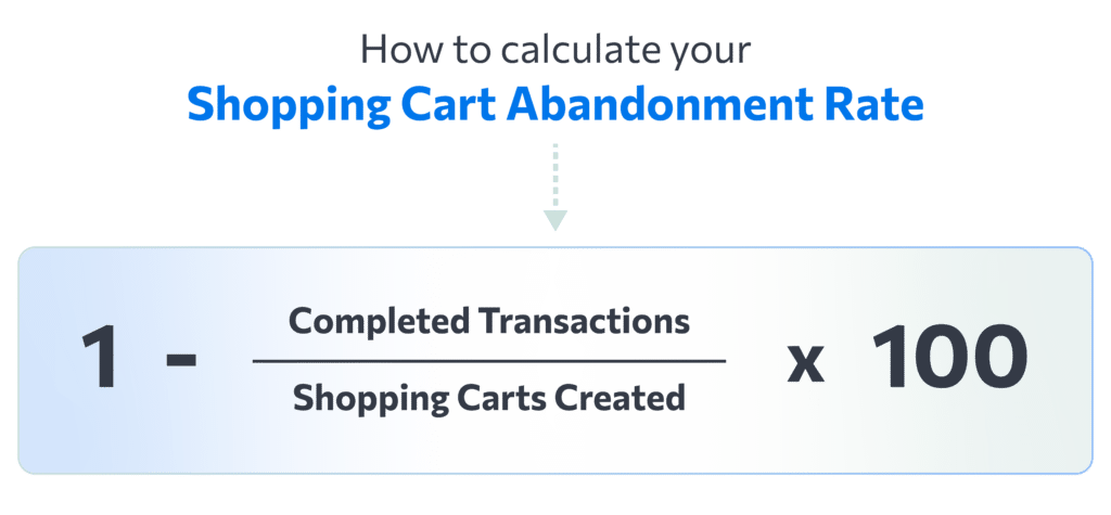 If you want to reduce the number of instances that people abandon their shopping cart on your site, you need to start by measuring how often it’s happening today. To calculate your shopping cart abandonment rate, identify how many completed purchases your website had in a given time period, such as a month, a quarter, or a year. Next, identify how many carts were created in that time period. Divide the number of completed purchases by number of carts created. Subtract that number from 1 and multiply by 100. This is your shopping cart abandonment rate.